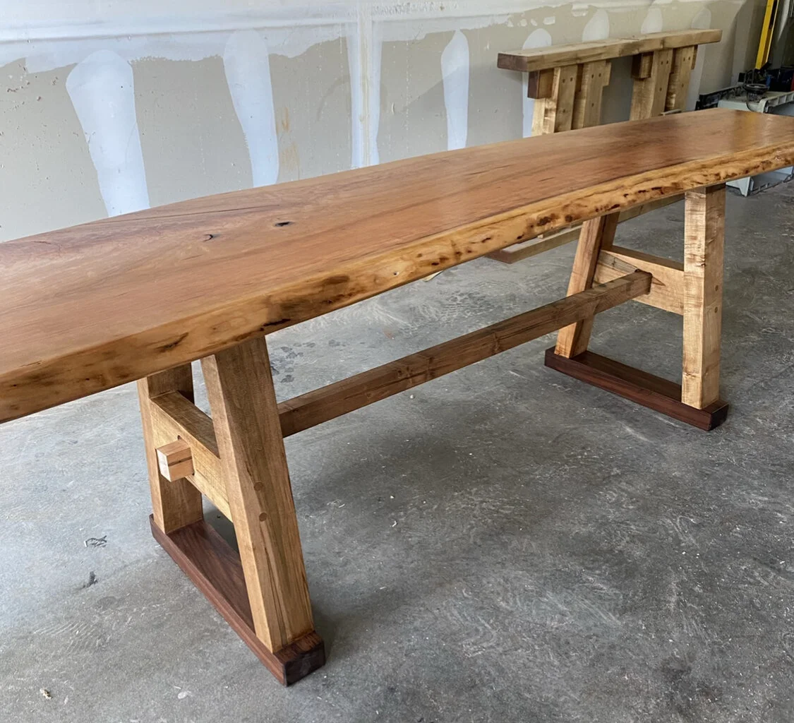 Handcrafted Solid Walnut & Maple Slab Table. 8.5’L x 36”W x 30”T. $2,000.00 (in stock). Customization available